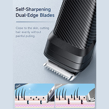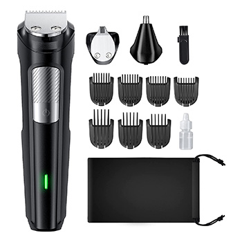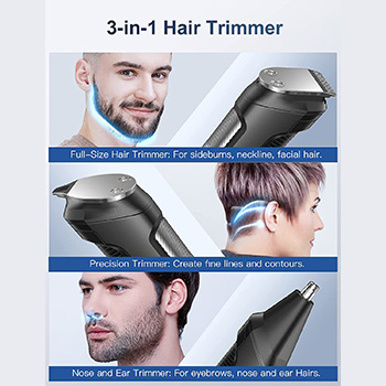 【Multi-Functional Grooming Tool Kit】Deal with whole-body hair removal/trimming tasks from hair, beard, nose and ear hair to other body hair with one shaver. Change three interchangeable heads(full-size hair trimmer, precision trimmer, nose and ear trimmer) and utilize the stubble guard(1mm), and hair guards(3mm/5mm/7mm/9mm/12mm/16mm).